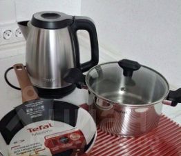 Есть стиральная машина, кондиционер, измельчитель пищевых отходов WASTE FIGHTER, стационарный фильтр питьевой воды Аквафор DWM-101S, встроенный холодильник BOSCH, микроволновая печь BOSCH, духовой шкаф, варочная панель BOSCH с посудой TEFAL, вытяжка, эл. чайник,утюг, ЖК телевизор со SMART приставкой, роутер. Установлена подсветка карниза кухни.