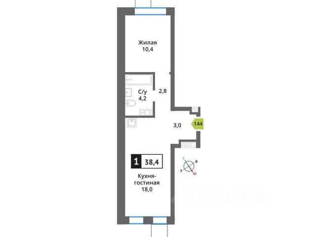 Дом находится в середине ЖК, а высокий этаж дополнительно обеспечивает тишину в квартире.
