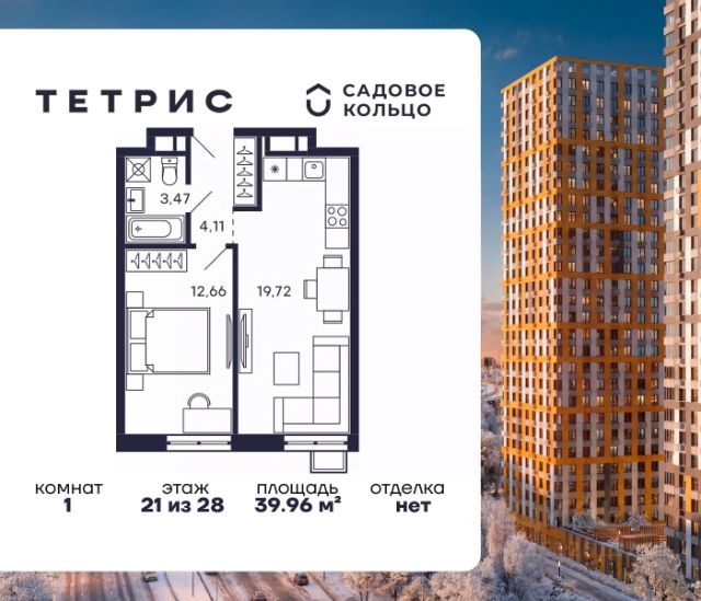 Продается квартира в ЖК Тетрис с 1 спальней на 16 этаже 28 этажного дома. Общая площадь: 39.69 кв.м. Высота потолков 2.95 м. Срок сдачи 2 квартал 2026 г. Эскроу-счет. Застройщик ГК "Садовое кольцо". Семейный жилой комплекс "Тетрис" с собственной развитой инфраструктурой, благоустроенным двором и функциональными планировочными решениями. Собственный двор-парк, детские и спортивные площадки. Продуманные зоны отдыха с ландшафтным дизайном. Охраняемая дворовая территория и круглосуточное видеонаблюдение. Рядом удобная транспортная развязка и станция МЦД Павшино. ЖК "Тетрис" объединяет все важнейшие факторы, формирующие комфорт: Просторный обустроенный двор — место, где весело проводить время с друзьями и семьей. Свой торговый центр, чтобы любая мелочь была под рукой. Удобная локация и транспортная доступность. Свои медицинский центр и школа с блоком начальных классов. Жилой комплекс "Тетрис" обеспечит вам идеальное пространство для жизни, где все необходимое под рукой. Благодаря этому вы получаете самый драгоценный ресурс - время на общение с друзьями и семьей, заботу о себе и личное развитие.