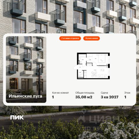Продаётся 1-комн. квартира площадью 31,59 кв.м на 1 этаже 9 этажного дома (Корпус 3.2, Секция 3) проекта ПИК Ильинские луга. Светлый просторный подъезд на уровне земли, функциональная планировка, большие окна, предчистовая отделка. Жилой район "Ильинские луга" находится в 10 километрах от МКАД по Новорижскому шоссе, в 20 минутах на автомобиле от станций метро "Волоколамская", "Тушинская" и "Строгино". В будущем ближе к проекту, в 9 минутах пути на машине, откроется станция "Ильинская" Рублёво-Архангельской линии, которая будет соединять Арбатско-Покровскую линию и Большую кольцевую линию. Сейчас в квартале начались продажи в корпусах 3.2, 3.3, 3.4, 3.5 и 3.6. "Ильинские луга" — масштабный проект, в который входит девять детских садов, четыре школы и поликлиника. Он строится в престижном и экологичном районе среди лесов и памятников природы. За 5 минут от жилого квартала можно доехать до Рублёво-Успенского шоссе, а за 30 минут — до центра Москвы. До крупного торгового центра "РИГАМОЛЛ" всего 5 минут на автомобиле, а до ТЦ "Твой дом" и гипермаркета "Глобус" — 10 минут. В "Ильинских лугах" строятся только девятиэтажные дома — такая архитектура соответствует спокойной жизни за городом. В каждом дворе-парке есть места для отдыха, детские и спортивные площадки. А ещё, здесь уже открыт большой PlayHub "Гравити" — современное игровое пространство с космической тематикой, холмами, зонами для игр и отдыха жителей любого возраста. На первых этажах уже работают магазины, кафе и пекарни. Места для отдыха от "Ильинских лугов" тоже недалеко: 10 минут на машине — и вы в музее-усадьбе "Архангельское". Также рядом находится Лохин остров — памятник природы, где водятся речные черепахи, есть места для кемпинга и возможность сплавиться по реке. Артикул 999730 (Застройщик ООО "СЗ "ГРАДОЛИМП")