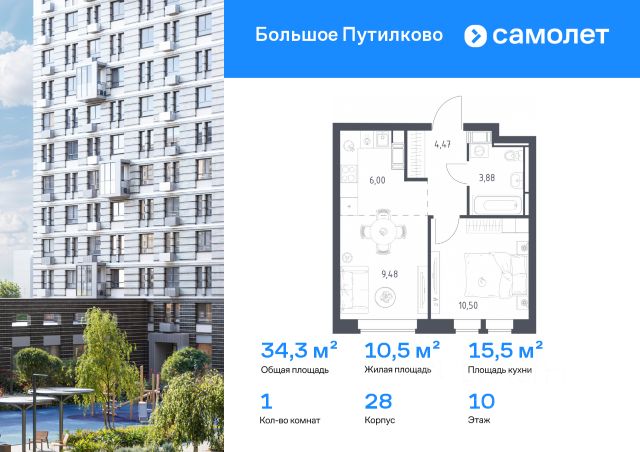 Строим кварталы для жизни с заботой о будущем. Предлагается 1-комнатная квартира комфорт-класса 35,97 кв.м в корпусе 28 на 10 этаже, в ЖК "Большое Путилково" Квартира с чистовой отделкой. Доступность дополнительных опций уточняйте у застройщика. Приобрести квартиру возможно по специальным акциям от застройщика, с текущими условиями акций можно ознакомиться в блоке "Акций". Цена динамическая и может отличаться, уточняйте актуальность у застройщика. "Большое Путилково" — масштабный жилой комплекс рядом с Алешкинским и Новогорским лесопарками. Мы уже построили и открыли 3 детских сада и школу, на первых этажах корпусов работают магазины, аптеки, кафе и пекарни. Удобное расположение проекта позволяет всего за 10 минут добраться до 4 станций метро. Во дворах обустроены детские площадки и зоны для отдыха. Все квартиры сдаются с готовой отделкой - переезжайте сразу после получения ключей!