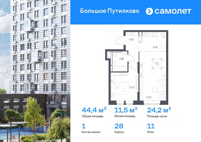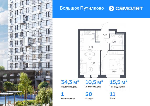 Продажа 1-комнатных квартир на 11 этаже в поселке городского типа Путилково Московской области