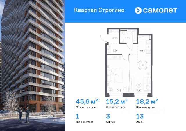 Строим кварталы для жизни с заботой о будущем. Предлагается 1-комнатная квартира комфорт-класса 45,62 кв.м в корпусе 3 на 13 этаже, в ЖК "Квартал Строгино" Квартира без отделки. Доступность опции "отделка" и возможность комплектации мебелью и декором уточняйте у застройщика. Приобрести квартиру возможно по специальным акциям от застройщика, с текущими условиями акций можно ознакомиться в блоке "Акций". Цена динамическая и может отличаться, уточняйте актуальность у застройщика. В жилом комплексе "Квартал Строгино" вас ждет широкий выбор досуга. Рядом МКАД и выезд на Новорижское шоссе и станции метро "Строгино" и "Мякинино". В пешей доступности — Живописная бухта, можно доехать до "Липовой Рощи" и "Серебряного бора". На территории комплекса будут 2 детских сада, школа и поликлиника. Двор-парк с площадками, велодорожками и паркингами. В лобби есть помещения для колясок. Квартиры с готовой отделкой и видом на бухту. Купить 1-комнатную квартиру на 13 этаже в Красногорске.