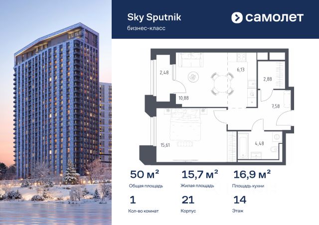 Строим кварталы для жизни с заботой о будущем. Предлагаются 1-комнатные апартаменты бизнес-класса 50,04 кв.м в корпусе 21 на 14 этаже, в Sky Sputnik Апартаменты с чистовой отделкой. Доступность дополнительных опций уточняйте у застройщика. Прописка не предусмотрена в рамках юридического статуса - апартаменты. Приобрести апартаменты возможно по специальным акциям от застройщика, с текущими условиями акций можно ознакомиться в блоке "Акций". Цена динамическая и может отличаться, уточняйте актуальность у застройщика. Квартал находится на северо-западе Московской области, в 200 км от МКАД. Из окон домов открывается потрясающий вид на парк "Липовая Роща" и Живописную бухту. Уже открыта вся необходимая инфраструктура: 3 детских сада, частная школа, аптеки, коворкинги, магазины и кафе. В 2027 году рядом с проектом появится станция метро "Липовая Роща". До станции метро Строгино можно дойти за 25 минут. Все апартаменты сдаются с отделкой и мебелью.