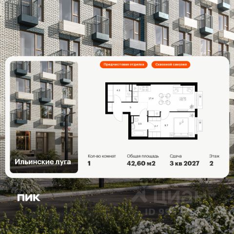 Продаётся 1-комн. квартира площадью 36,1 кв.м на 2 этаже 9 этажного дома (Корпус 2.13, Секция 1) проекта ПИК Ильинские луга. Светлый просторный подъезд на уровне земли, функциональная планировка, большие окна, c отделкой. Жилой район "Ильинские луга" находится в 10 километрах от МКАД по Новорижскому шоссе, в 20 минутах на автомобиле от станций метро "Волоколамская", "Тушинская" и "Строгино". В будущем ближе к проекту, в 9 минутах пути на машине, откроется станция "Ильинская" Рублёво-Архангельской линии, которая будет соединять Арбатско-Покровскую линию и Большую кольцевую линию. Сейчас в квартале начались продажи в корпусах 3.2, 3.3, 3.4, 3.5 и 3.6. "Ильинские луга" — масштабный проект, в который входит девять детских садов, четыре школы и поликлиника. Он строится в престижном и экологичном районе среди лесов и памятников природы. За 5 минут от жилого квартала можно доехать до Рублёво-Успенского шоссе, а за 30 минут — до центра Москвы. До крупного торгового центра "РИГАМОЛЛ" всего 5 минут на автомобиле, а до ТЦ "Твой дом" и гипермаркета "Глобус" — 10 минут. В "Ильинских лугах" строятся только девятиэтажные дома — такая архитектура соответствует спокойной жизни за городом. В каждом дворе-парке есть места для отдыха, детские и спортивные площадки. А ещё, здесь уже открыт большой PlayHub "Гравити" — современное игровое пространство с космической тематикой, холмами, зонами для игр и отдыха жителей любого возраста. На первых этажах уже работают магазины, кафе и пекарни. Места для отдыха от "Ильинских лугов" тоже недалеко: 10 минут на машине — и вы в музее-усадьбе "Архангельское". Также рядом находится Лохин остров — памятник природы, где водятся речные черепахи, есть места для кемпинга и возможность сплавиться по реке. Артикул 927455 (Застройщик ООО "СЗ "ГРАДОЛИМП")