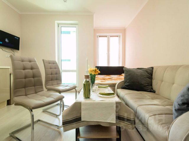 Квартира 31 м2 (общая), кухня 8,13 м2, комната 10,24 м2, лоджия 3,68 м2, два санузла 2,16 и 3,68 м2. Высота потолка 2,75 м.