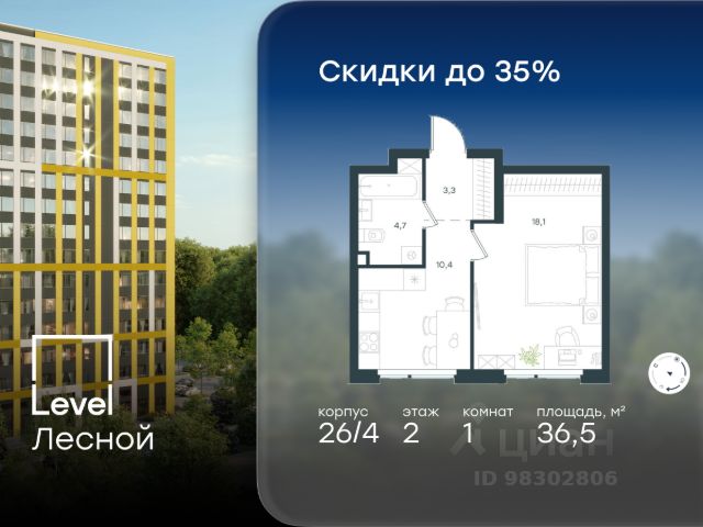 Цена указана с учётом скидки при 100%-й оплате, несубсидированной ипотеке, рассрочке (кроме программы "Рассрочка 0%"). В районе, утопающем в густой зелени лесов, многочисленных парков и скверов, продаётся 1-комнатная квартира площадью 40.20 кв.м без отделки. Квартира расположена на 2 этаже в жилом комплексе комфорт-класса Level Лесной (компания Level Group/Левел групп). Отличная транспортная доступность: - 25 мин. пешком до станции метро "Пятницкое шоссе"; - 28 мин. на автобусе до станции метро и МЦД-2 "Волоколамская"; - 11 мин. на авто до МКАД; - 25 мин. на авто до ТТК. Продуманный архитектурный проект: - Концепция проекта Level Лесной от бюро СПИЧ; - Высотность комплекса до 15 этажей с уникальными видами на лесные массивы и город; - Высота потолков до 3 м; - Современные окна высотой до 1,6 м, в части квартир предусмотрены окна в пол. Высота подоконников 0,6 м; Расположение: Level Лесной строится в зелёной зоне ближайшего Подмосковья, г.о. Красногорск в посёлке Отрадное. Шаговая и автомобильная доступность до метро и больших транспортных артерий города. За 25 минут вы дойдёте до станции метро "Пятницкое шоссе", а за 20 минут на машине сможете доехать до станции метро "Тушинская". Район окружен роскошной зеленью лесов и парковых зон, занимающих территорию свыше 1 000 гектаров. Помимо благоприятной экологии, здесь множество возможностей для активного отдыха и поддержания физической формы. Облагороженная территории с полностью развитой инфраструктурой. На территории проекта находится детский сад и школа "Светлые Горы", которая входит в список лучших частных школ от Forbes Education (по данным на 2023г.). Кроме того, в пешей доступности расположено ещё 8 детских садов, а также запланировано открытие современной муниципальной школы. В непосредственной близости находятся сетевые супермаркеты и локальные магазины, аптеки, клиники, почта, библиотека, салоны красоты, рестораны, спортивные и творческие секции, развивающие детские центры. В 12 минутах пешком расположен торговый парк "Отрада" с продуктовым и строительным гипермаркетами, магазинами, кинотеатром и развлечениями для детей. Внутренняя инфраструктура: Мы знаем, как важно, чтобы магазины и сервисы были всегда рядом. В сданных корпусах Level Лесной уже расположена полностью готовая развитая инфраструктура. На первых этажах корпуса 27 предусмотрено ещё 14 коммерческих помещений. Благоустройство: Продуманное пространство и аура приватного европейского городка рождают чувство лёгкости и расслабления у каждого, кто попадает на территорию проекта. Концепцию общественных площадок разработали в партнёрстве два архитектурных бюро: Highlight Architecture и SCAPE. В безопасных дворах без машин каждый обязательно найдёт себе место для вдохновения, отдыха и спорта.