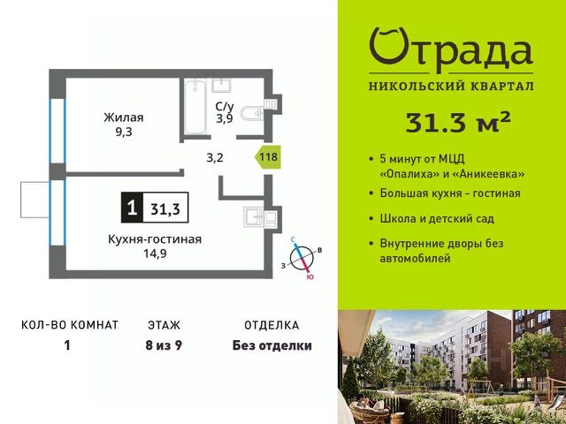 Строим кварталы для жизни с заботой о будущем. Предлагается 1-комнатная квартира комфорт-класса площадью 40,56 кв.м в корпусе 3 на 8-м этаже, в жилом комплексе "Квартал Строгино". В варианте без отделки мы установили окна и входную дверь, завели в квартиру коммуникации. Получайте ключи и начните создавать интерьер мечты в новой квартире. В варианте с предчистовой отделкой мы развели коммуникации по помещениям, выровняли и зашпаклевали стены, подготовили пол к чистовому покрытию. Ваша будущая квартира готова к финишному ремонту. Осталось выбрать, какие оттенки будут в вашем интерьере и воплотить дизайнерские идеи. В варианте с готовой отделкой мы поклеили обои под покраску, постелили полы в комнатах и санузлах, выполнили отделку стен. Установили сантехнику и межкомнатные двери, провели электрику. Это лучшее соотношение цены, качества и затраченного времени. Осталось только выбрать место для обеденного стола и удобного дивана. Приобрести квартиру возможно по специальным акциям от застройщика, с текущими условиями акций можно ознакомиться в блоке "Акций". Цена динамическая и может отличаться, уточняйте актуальность у застройщика. В жилом комплексе "Квартал Строгино" вас ждет широкий выбор досуга. Рядом МКАД и выезд на Новорижское шоссе и станции метро "Строгино" и "Мякинино". В пешей доступности — Живописная бухта, можно доехать до "Липовой Рощи" и "Серебряного бора". На территории комплекса будут 2 детских сада, школа и поликлиника. Двор-парк с площадками, велодорожками и паркингами. В лобби есть помещения для колясок. Квартиры с готовой отделкой и видом на бухту.