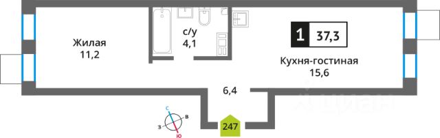 Продаётся 1-комнатная квартира 333, площадью 34,31 м², на 8 этаже в ЖК "Аникеевский" корпус 1.1. Стоимость — от 7339489 руб. Квартира без отделки, планировка односторонняя, окна на улицу.