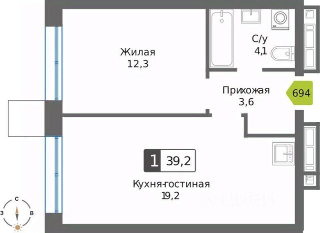 Продаю 1-комнатную КВАРТИРУ с шикарной планировкой в Новом жилом комплексе!