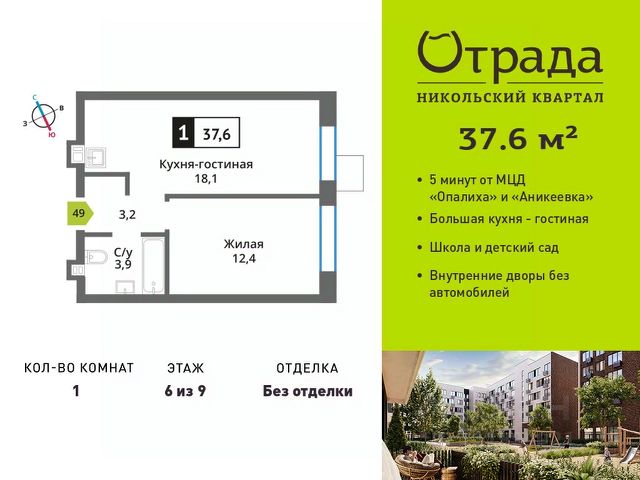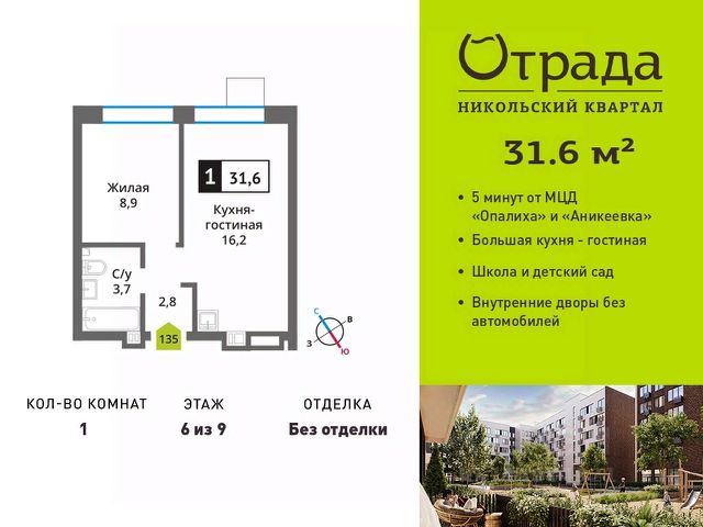 Однокомнатная квартира с просторной кухней-гостиной в жилом комплексе бизнес-класса Сити квартал Отрада. Планировка квартиры выполнена по современным стандартам и отличается повышенным комфортом. Квартал состоит из трех 31-этажных башен, вырастающих из единого основания, на вершине которого разместился приватный двор с доступом только для резидентов. На 31 этаже каждой из башен располагаются уникальные пентхаусы. Благоустройство закрытого двора включает в себя прогулочные дорожки, уютные зоны отдыха, разнообразные детские и спортивные площадки, а также собственную инфраструктуру на первых этажах дома - магазины, кафе, рестораны и фитнес-клуб. Проектом предусмотрен многоуровневый подземный паркинг с кладовыми помещениями. Идеальное расположение комплекса в сердце города сочетает в себе все преимущества комфортной жизни с прямым доступом к инфраструктурным, транспортным и культурным объектам. Надежный застройщик ГК "Отрада" с высочайшим рейтингом 5 звезд от портала ЕРЗ. Все корпуса во всех ЖК сданы раньше срока! Купить квартиру евродвушку в новостройке в Красногорске.