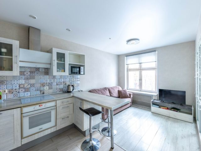 Кухня 9,8 кв.м — полностью оборудована всем необходимым: варочная панель, духовой шкаф, эргономичные системы хранения.