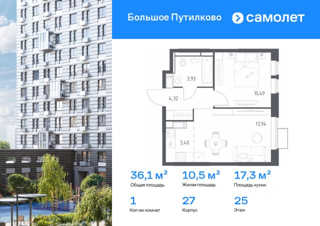Строим кварталы для жизни с заботой о будущем. Предлагается 1-комнатная квартира комфорт-класса 34,23 кв.м в корпусе 27 на 25 этаже, в ЖК "Большое Путилково" Квартира с чистовой отделкой. Доступность дополнительных опций уточняйте у застройщика. Приобрести квартиру возможно по специальным акциям от застройщика, с текущими условиями акций можно ознакомиться в блоке "Акций". Цена динамическая и может отличаться, уточняйте актуальность у застройщика. "Большое Путилково" — масштабный жилой комплекс рядом с Алешкинским и Новогорским лесопарками. Мы уже построили и открыли 3 детских сада и школу, на первых этажах корпусов работают магазины, аптеки, кафе и пекарни. Удобное расположение проекта позволяет всего за 10 минут добраться до 4 станций метро. Во дворах обустроены детские площадки и зоны для отдыха. Все квартиры сдаются с готовой отделкой - переезжайте сразу после получения ключей!