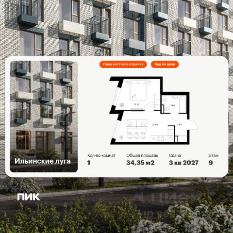Продаётся 1-комн. квартира площадью 34,6 кв.м на 8 этаже 9 этажного дома (Корпус 3.5, Секция 4) проекта ПИК Ильинские луга. Светлый просторный подъезд на уровне земли, функциональная планировка, большие окна, предчистовая отделка. Жилой район "Ильинские луга" находится в 10 километрах от МКАД по Новорижскому шоссе, в 20 минутах на автомобиле от станций метро "Волоколамская", "Тушинская" и "Строгино". В будущем ближе к проекту, в 9 минутах пути на машине, откроется станция "Ильинская" Рублёво-Архангельской линии, которая будет соединять Арбатско-Покровскую линию и Большую кольцевую линию. Сейчас в квартале начались продажи в корпусах 3.2, 3.3, 3.4, 3.5 и 3.6. "Ильинские луга" — масштабный проект, в который входит девять детских садов, четыре школы и поликлиника. Он строится в престижном и экологичном районе среди лесов и памятников природы. За 5 минут от жилого квартала можно доехать до Рублёво-Успенского шоссе, а за 30 минут — до центра Москвы. До крупного торгового центра "РИГАМОЛЛ" всего 5 минут на автомобиле, а до ТЦ "Твой дом" и гипермаркета "Глобус" — 10 минут. В "Ильинских лугах" строятся только девятиэтажные дома — такая архитектура соответствует спокойной жизни за городом. В каждом дворе-парке есть места для отдыха, детские и спортивные площадки. А ещё, здесь уже открыт большой PlayHub "Гравити" — современное игровое пространство с космической тематикой, холмами, зонами для игр и отдыха жителей любого возраста. На первых этажах уже работают магазины, кафе и пекарни. Места для отдыха от "Ильинских лугов" тоже недалеко: 10 минут на машине — и вы в музее-усадьбе "Архангельское". Также рядом находится Лохин остров — памятник природы, где водятся речные черепахи, есть места для кемпинга и возможность сплавиться по реке. Артикул 1001866 (Застройщик ООО "СЗ "ГРАДОЛИМП")