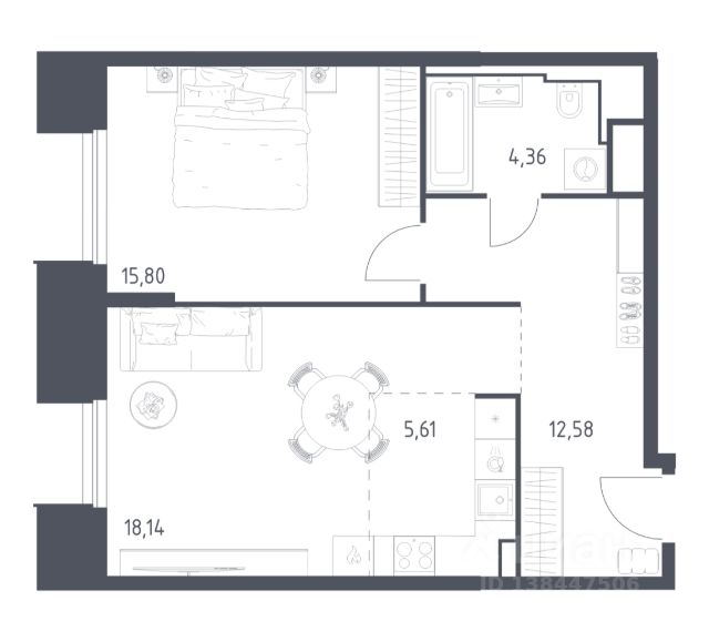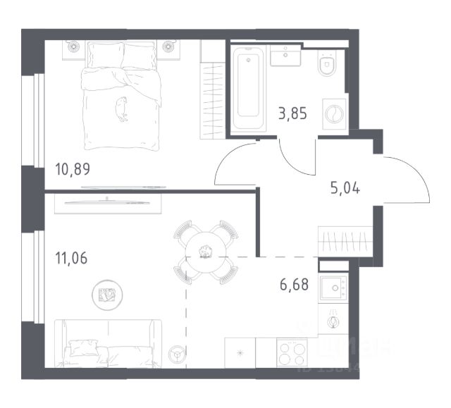 Продаётся 1-комнатная квартира 299, площадью 34,31 м², на 6 этаже в ЖК "Аникеевский" корпус 1.1. Стоимость — от 7238254 руб. Квартира без отделки, планировка односторонняя, окна на улицу.