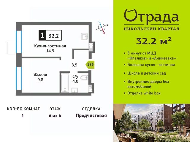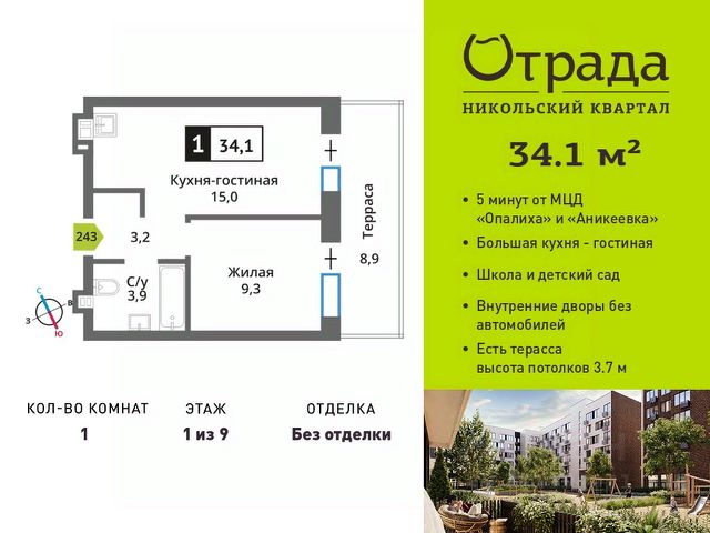 Продается квартира в ЖК Тетрис с 1 спальней на 26 этаже 28 этажного дома. Общая площадь: 39.86 кв.м. Высота потолков 2.95 м. Срок сдачи 2 квартал 2026 г. Эскроу-счет. Застройщик ГК "Садовое кольцо". Семейный жилой комплекс "Тетрис" с собственной развитой инфраструктурой, благоустроенным двором и функциональными планировочными решениями. Собственный двор-парк, детские и спортивные площадки. Продуманные зоны отдыха с ландшафтным дизайном. Охраняемая дворовая территория и круглосуточное видеонаблюдение. Рядом удобная транспортная развязка и станция МЦД Павшино. ЖК "Тетрис" объединяет все важнейшие факторы, формирующие комфорт: Просторный обустроенный двор — место, где весело проводить время с друзьями и семьей. Свой торговый центр, чтобы любая мелочь была под рукой. Удобная локация и транспортная доступность. Свои медицинский центр и школа с блоком начальных классов. Жилой комплекс "Тетрис" обеспечит вам идеальное пространство для жизни, где все необходимое под рукой. Благодаря этому вы получаете самый драгоценный ресурс - время на общение с друзьями и семьей, заботу о себе и личное развитие. Продам 1-комнатную квартиру от застройщика в Красногорске.
