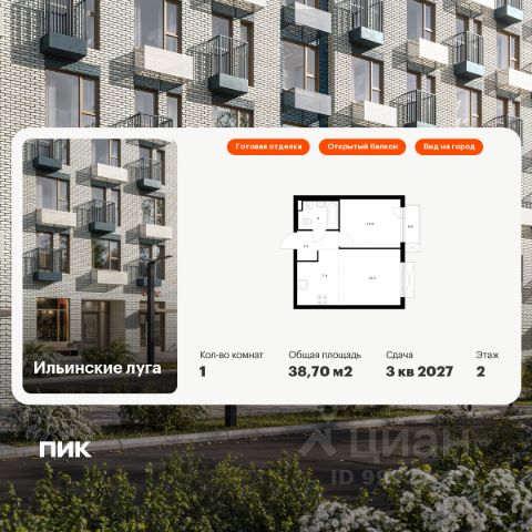 Продаётся 1-комн. квартира площадью 35,5 кв.м на 3 этаже 9 этажного дома (Корпус 4.3, Секция 2) проекта ПИК Ильинские луга. Светлый просторный подъезд на уровне земли, функциональная планировка, большие окна, предчистовая отделка. Жилой район "Ильинские луга" находится в 10 километрах от МКАД по Новорижскому шоссе, в 20 минутах на автомобиле от станций метро "Волоколамская", "Тушинская" и "Строгино". В будущем ближе к проекту, в 9 минутах пути на машине, откроется станция "Ильинская" Рублёво-Архангельской линии, которая будет соединять Арбатско-Покровскую линию и Большую кольцевую линию. Сейчас в квартале начались продажи в корпусах 3.2, 3.3, 3.4, 3.5 и 3.6. "Ильинские луга" — масштабный проект, в который входит девять детских садов, четыре школы и поликлиника. Он строится в престижном и экологичном районе среди лесов и памятников природы. За 5 минут от жилого квартала можно доехать до Рублёво-Успенского шоссе, а за 30 минут — до центра Москвы. До крупного торгового центра "РИГАМОЛЛ" всего 5 минут на автомобиле, а до ТЦ "Твой дом" и гипермаркета "Глобус" — 10 минут. В "Ильинских лугах" строятся только девятиэтажные дома — такая архитектура соответствует спокойной жизни за городом. В каждом дворе-парке есть места для отдыха, детские и спортивные площадки. А ещё, здесь уже открыт большой PlayHub "Гравити" — современное игровое пространство с космической тематикой, холмами, зонами для игр и отдыха жителей любого возраста. На первых этажах уже работают магазины, кафе и пекарни. Места для отдыха от "Ильинских лугов" тоже недалеко: 10 минут на машине — и вы в музее-усадьбе "Архангельское". Также рядом находится Лохин остров — памятник природы, где водятся речные черепахи, есть места для кемпинга и возможность сплавиться по реке. Артикул 1011881 (Застройщик ООО "СЗ "ГРАДОЛИМП") 1-комнатная квартира с отделкой в поселке Ильинское-Усово Московской области.