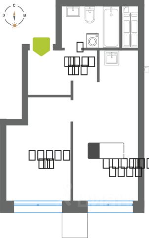 Продаётся 1-комнатная квартира в строящемся доме (Секция Нова), срок сдачи: II-кв. 2028, общей площадью 32.7 кв.м., на 30 этаже.