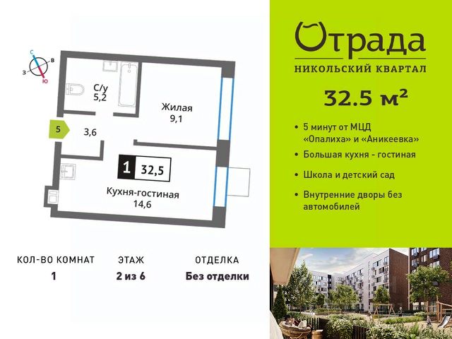 Однокомнатная квартира с просторной кухней-гостиной в жилом комплексе бизнес-класса Сити квартал Отрада. Планировка квартиры выполнена по современным стандартам и отличается повышенным комфортом. Квартал состоит из трех 31-этажных башен, вырастающих из единого основания, на вершине которого разместился приватный двор с доступом только для резидентов. На 31 этаже каждой из башен располагаются уникальные пентхаусы. Благоустройство закрытого двора включает в себя прогулочные дорожки, уютные зоны отдыха, разнообразные детские и спортивные площадки, а также собственную инфраструктуру на первых этажах дома - магазины, кафе, рестораны и фитнес-клуб. Проектом предусмотрен многоуровневый подземный паркинг с кладовыми помещениями. Идеальное расположение комплекса в сердце города сочетает в себе все преимущества комфортной жизни с прямым доступом к инфраструктурным, транспортным и культурным объектам. Надежный застройщик ГК "Отрада" с высочайшим рейтингом 5 звезд от портала ЕРЗ. Все корпуса во всех ЖК сданы раньше срока! 1-комнатная квартира первичка в Красногорске.