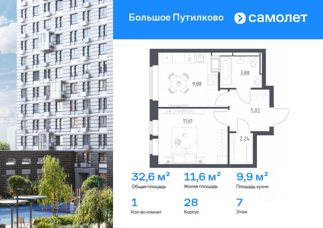 Строим кварталы для жизни с заботой о будущем. Предлагается 1-комнатная квартира комфорт-класса 36,16 кв.м в корпусе 28 на 2 этаже, в ЖК "Большое Путилково" Квартира без отделки. Доступность опции "отделка" и возможность комплектации мебелью и декором уточняйте у застройщика. Приобрести квартиру возможно по специальным акциям от застройщика, с текущими условиями акций можно ознакомиться в блоке "Акций". Цена динамическая и может отличаться, уточняйте актуальность у застройщика. "Большое Путилково" — масштабный жилой комплекс рядом с Алешкинским и Новогорским лесопарками. Мы уже построили и открыли 3 детских сада и школу, на первых этажах корпусов работают магазины, аптеки, кафе и пекарни. Удобное расположение проекта позволяет всего за 10 минут добраться до 4 станций метро. Во дворах обустроены детские площадки и зоны для отдыха. Все квартиры сдаются с готовой отделкой - переезжайте сразу после получения ключей!
