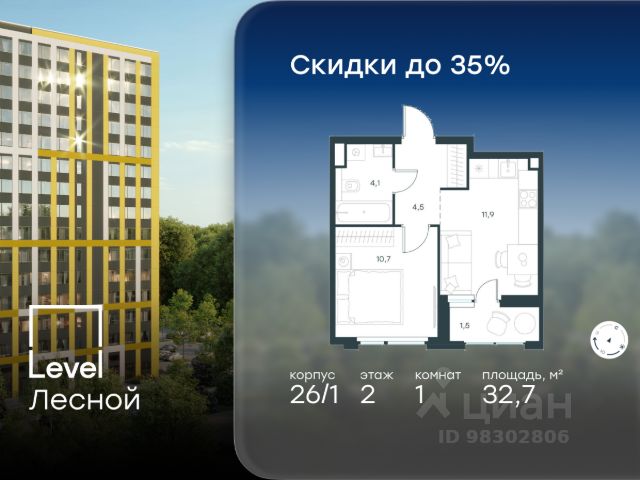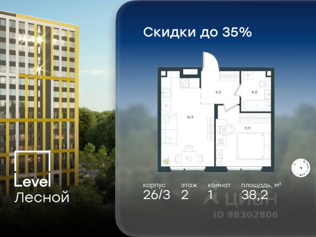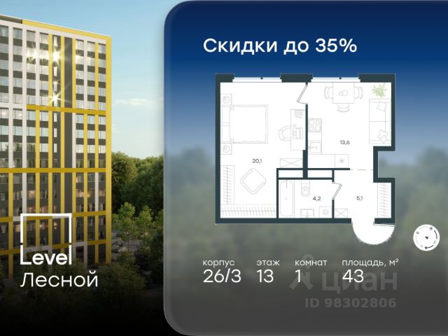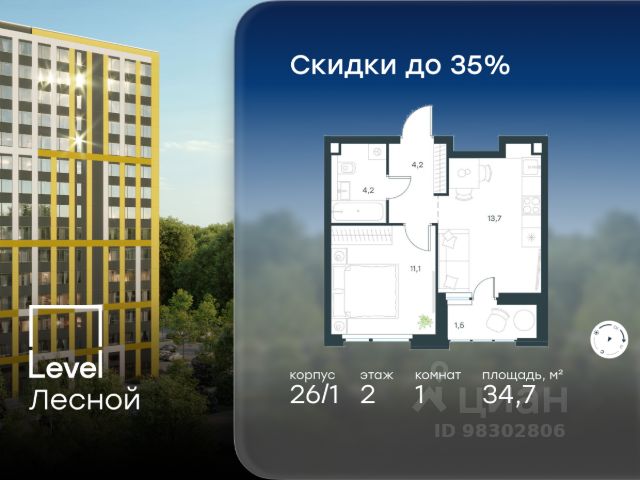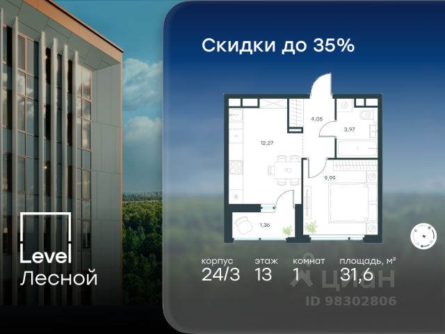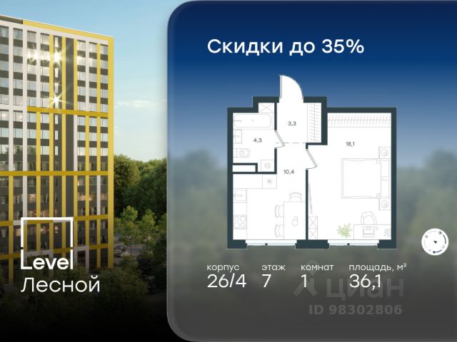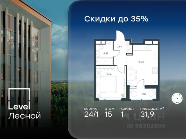 Цена указана с учётом скидки при 100%-й оплате, несубсидированной ипотеке, рассрочке (кроме программы "Рассрочка 0%"). В районе, утопающем в густой зелени лесов, многочисленных парков и скверов, продаётся 1-комнатная квартира площадью 37.60 кв.м без отделки. Квартира расположена на 15 этаже в жилом комплексе комфорт-класса Level Лесной (компания Level Group/Левел групп). Отличная транспортная доступность: - 25 мин. пешком до станции метро "Пятницкое шоссе"; - 28 мин. на автобусе до станции метро и МЦД-2 "Волоколамская"; - 11 мин. на авто до МКАД; - 25 мин. на авто до ТТК. Продуманный архитектурный проект: - Концепция проекта Level Лесной от бюро СПИЧ; - Высотность комплекса до 15 этажей с уникальными видами на лесные массивы и город; - Высота потолков до 3 м; - Современные окна высотой до 1,6 м, в части квартир предусмотрены окна в пол. Высота подоконников 0,6 м; Расположение: Level Лесной строится в зелёной зоне ближайшего Подмосковья, г.о. Красногорск в посёлке Отрадное. Шаговая и автомобильная доступность до метро и больших транспортных артерий города. За 25 минут вы дойдёте до станции метро "Пятницкое шоссе", а за 20 минут на машине сможете доехать до станции метро "Тушинская". Район окружен роскошной зеленью лесов и парковых зон, занимающих территорию свыше 1 000 гектаров. Помимо благоприятной экологии, здесь множество возможностей для активного отдыха и поддержания физической формы. Облагороженная территории с полностью развитой инфраструктурой. На территории проекта находится детский сад и школа "Светлые Горы", которая входит в список лучших частных школ от Forbes Education (по данным на 2023г.). Кроме того, в пешей доступности расположено ещё 8 детских садов, а также запланировано открытие современной муниципальной школы. В непосредственной близости находятся сетевые супермаркеты и локальные магазины, аптеки, клиники, почта, библиотека, салоны красоты, рестораны, спортивные и творческие секции, развивающие детские центры. В 12 минутах пешком расположен торговый парк "Отрада" с продуктовым и строительным гипермаркетами, магазинами, кинотеатром и развлечениями для детей. Внутренняя инфраструктура: Мы знаем, как важно, чтобы магазины и сервисы были всегда рядом. В сданных корпусах Level Лесной уже расположена полностью готовая развитая инфраструктура. На первых этажах корпуса 27 предусмотрено ещё 14 коммерческих помещений. Благоустройство: Продуманное пространство и аура приватного европейского городка рождают чувство лёгкости и расслабления у каждого, кто попадает на территорию проекта. Концепцию общественных площадок разработали в партнёрстве два архитектурных бюро: Highlight Architecture и SCAPE. В безопасных дворах без машин каждый обязательно найдёт себе место для вдохновения, отдыха и спорта.