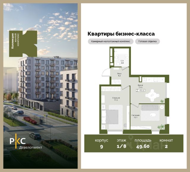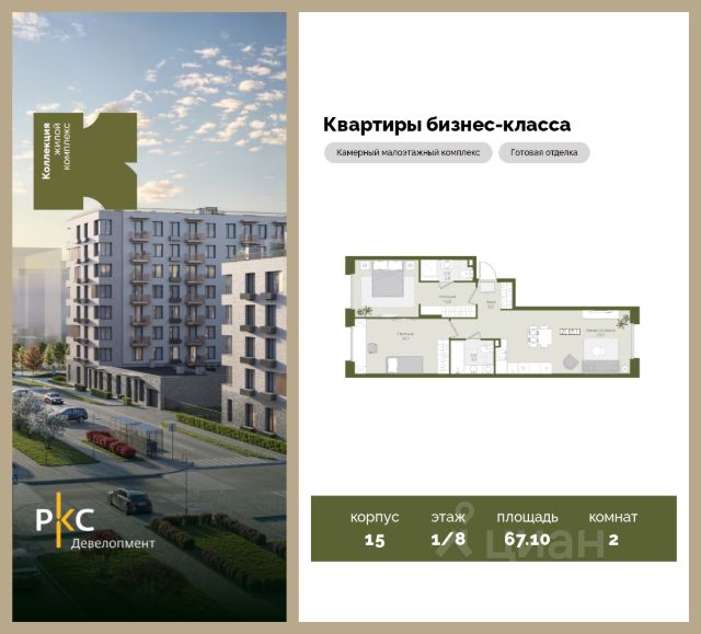 Продается 2-комнатная квартира на 1 этаже с готовой отделкой от застройщика.. Общая площадь 46 кв.м. На выбор представлены 3 вида дизайнерской отделки с использованием качественных материалов. Высота потолков 3 м. Жилой комплекс "Коллекция" расположен на северо-западе от Москвы, в поселке Нахабино, всего 13 км от МКАД. Прекрасная экология и живописная природа, отсутствие промышленных зон и вредных предприятий. В проекте планируется строительство 5 корпусов средней этажности (4-8 этажей) с террасами на угловых секциях и торцевых частях зданий, строительство собственной инфраструктуры: три детских сада, школа, поликлиника, физкультурно-оздоровительный комплекс. Жителям будут доступны машино-места в подземном паркинге, кладовые помещения. Удобная транспортная доступность позволит Вам доехать на автомобиле за 26 минут до метро "Митино", 30 минут до метро "Пятницкое шоссе", дойти до станции МЦД-2 Нахабино за 29 минут. В ближайшей перспективе - расширение местной дорожной сети и запуск новых маршрутов до ж/д станций и станций метро. Благоустроенная территория двора, позволит Вам не покидать сам жилой комплекс. Масштабное озеленение и множество площадок отдыха для взрослых и детей. Детские площадки выполнены в природных материалах, игровые комплексы с бизибордами, развивающие игровые установки для игр с песком. Спортивная инфраструктура: столы для настольного тенниса, тренажеры, гимнастический комплекс. Особую прелесть комплексу придает близость зеленых массивов. В пешей доступности находятся парк Дружба, загородный клуб "Moscow Country Club", парк имени Карбышева. Выгодные цены на старте продаж!