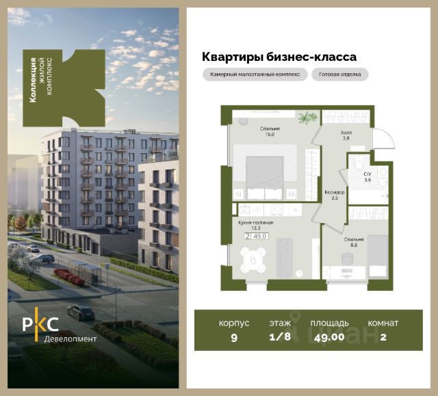 Продается уютная 2-комнатная квартира на 1 этаже с готовой отделкой от застройщика. В квартире 2 спальни, 2 гардеробные, 1 санузел, вид на парковку. Линейная планировка. Общая площадь 50 кв.м. На выбор представлены 3 вида дизайнерской отделки с использованием качественных материалов. Высота потолков 3 м. ЖК "Коллекция" расположен на северо-западе от Москвы, в поселке Нахабино, всего 13 км от МКАД. Прекрасная экология и живописная природа, престижный район. В проекте планируется строительство 5 корпусов средней этажности (4-8 этажей) с террасами на угловых секциях и торцевых частях зданий, строительство собственной инфраструктуры: три детских сада, школа, поликлиника, физкультурно-оздоровительный комплекс. Жителям будут доступны машино-места в подземном паркинге, кладовые помещения. Удобная транспортная доступность позволит Вам доехать на автомобиле за 26 минут до метро "Митино", 30 минут до метро "Пятницкое шоссе", дойти до станции МЦД-2 Нахабино за 29 минут. В ближайшей перспективе - расширение местной дорожной сети и запуск новых маршрутов до ж/д станций и станций метро. Благоустроенная территория двора, позволит Вам не покидать сам жилой комплекс. Масштабное озеленение и множество площадок отдыха для взрослых и детей. Детские площадки выполнены в природных материалах, игровые комплексы с бизибордами, развивающие игровые установки для игр с песком. Спортивная инфраструктура: столы для настольного тенниса, тренажеры, гимнастический комплекс. В пешей доступности находятся парк Дружба, загородный клуб "Moscow Country Club", парк имени Карбышева. Выгодные цены на старте продаж!