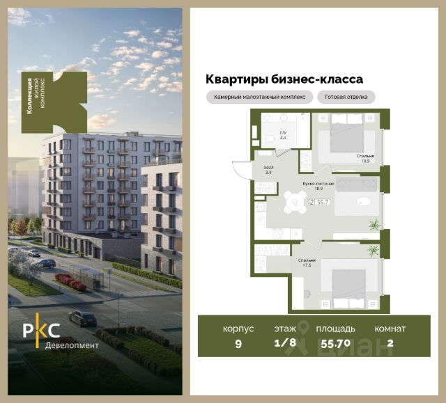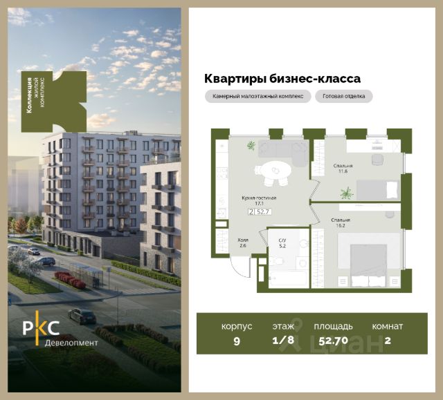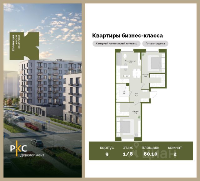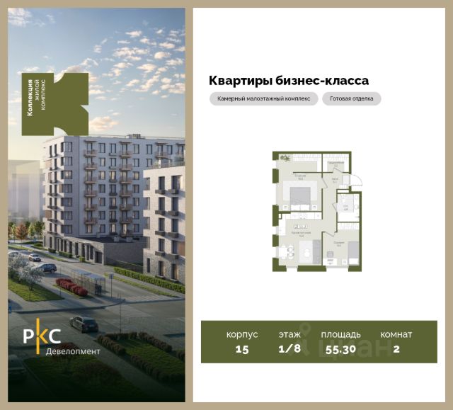 Продается 2-комнатная квартира на 1 этаже с готовой отделкой от застройщика.. Общая площадь 46 кв.м. На выбор представлены 3 вида дизайнерской отделки с использованием качественных материалов. Высота потолков 3 м. Жилой комплекс "Коллекция" расположен на северо-западе от Москвы, в поселке Нахабино, всего 13 км от МКАД. Прекрасная экология и живописная природа, отсутствие промышленных зон и вредных предприятий. В проекте планируется строительство 5 корпусов средней этажности (4-8 этажей) с террасами на угловых секциях и торцевых частях зданий, строительство собственной инфраструктуры: три детских сада, школа, поликлиника, физкультурно-оздоровительный комплекс. Жителям будут доступны машино-места в подземном паркинге, кладовые помещения. Удобная транспортная доступность позволит Вам доехать на автомобиле за 26 минут до метро "Митино", 30 минут до метро "Пятницкое шоссе", дойти до станции МЦД-2 Нахабино за 29 минут. В ближайшей перспективе - расширение местной дорожной сети и запуск новых маршрутов до ж/д станций и станций метро. Благоустроенная территория двора, позволит Вам не покидать сам жилой комплекс. Масштабное озеленение и множество площадок отдыха для взрослых и детей. Детские площадки выполнены в природных материалах, игровые комплексы с бизибордами, развивающие игровые установки для игр с песком. Спортивная инфраструктура: столы для настольного тенниса, тренажеры, гимнастический комплекс. Особую прелесть комплексу придает близость зеленых массивов. В пешей доступности находятся парк Дружба, загородный клуб "Moscow Country Club", парк имени Карбышева. Выгодные цены на старте продаж!