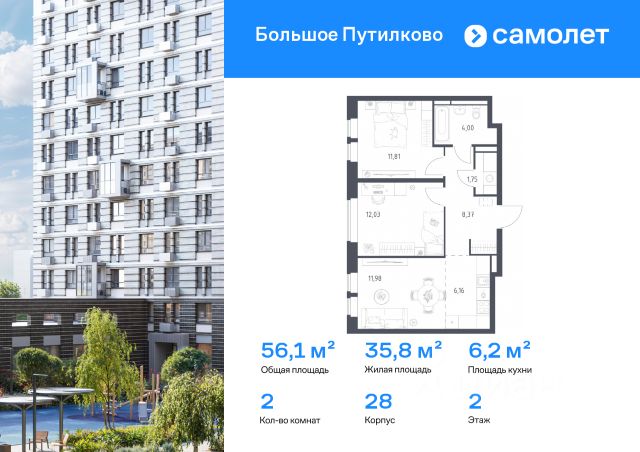 Предлагается 2-комнатная квартира комфорт-класса 58,16 кв.м в корпусе 28 на 2 этаже, в ЖК "Большое Путилково" Квартира с чистовой отделкой. Доступность дополнительных опций уточняйте у застройщика. Приобрести квартиру возможно по специальным акциям от застройщика, с текущими условиями акций можно ознакомиться в блоке "Акций". Цена динамическая и может отличаться, уточняйте актуальность у застройщика. "Большое Путилково" — масштабный жилой комплекс рядом с Алешкинским и Новогорским лесопарками. Мы уже построили и открыли 3 детских сада и школу, на первых этажах корпусов работают магазины, аптеки, кафе и пекарни. Удобное расположение проекта позволяет всего за 10 минут добраться до 4 станций метро. Во дворах обустроены детские площадки и зоны для отдыха. Все квартиры сдаются с готовой отделкой - переезжайте сразу после получения ключей!