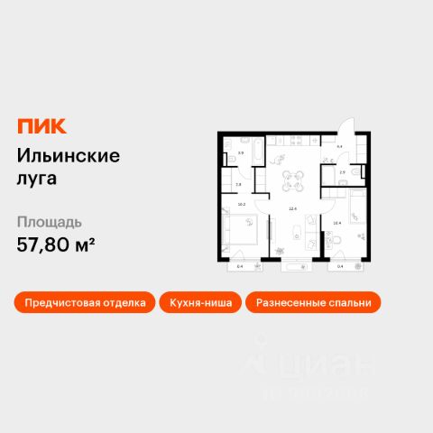 Продаётся 2-комн. квартира площадью 62,38 кв.м на 7 этаже 9 этажного дома (Корпус 4.1, Секция 3) проекта ПИК Ильинские луга. Светлый просторный подъезд на уровне земли, функциональная планировка, большие окна, c отделкой. Жилой район "Ильинские луга" находится в 10 километрах от МКАД по Новорижскому шоссе, в 20 минутах на автомобиле от станций метро "Волоколамская", "Тушинская" и "Строгино". В будущем ближе к проекту, в 9 минутах пути на машине, откроется станция "Ильинская" Рублёво-Архангельской линии, которая будет соединять Арбатско-Покровскую линию и Большую кольцевую линию. Сейчас в квартале начались продажи в корпусах 3.2, 3.3, 3.4, 3.5 и 3.6. "Ильинские луга" — масштабный проект, в который входит девять детских садов, четыре школы и поликлиника. Он строится в престижном и экологичном районе среди лесов и памятников природы. За 5 минут от жилого квартала можно доехать до Рублёво-Успенского шоссе, а за 30 минут — до центра Москвы. До крупного торгового центра "РИГАМОЛЛ" всего 5 минут на автомобиле, а до ТЦ "Твой дом" и гипермаркета "Глобус" — 10 минут. В "Ильинских лугах" строятся только девятиэтажные дома — такая архитектура соответствует спокойной жизни за городом. В каждом дворе-парке есть места для отдыха, детские и спортивные площадки. А ещё, здесь уже открыт большой PlayHub "Гравити" — современное игровое пространство с космической тематикой, холмами, зонами для игр и отдыха жителей любого возраста. На первых этажах уже работают магазины, кафе и пекарни. Места для отдыха от "Ильинских лугов" тоже недалеко: 10 минут на машине — и вы в музее-усадьбе "Архангельское". Также рядом находится Лохин остров — памятник природы, где водятся речные черепахи, есть места для кемпинга и возможность сплавиться по реке. Артикул 1015990 (Застройщик ООО "СЗ "ГРАДОЛИМП")
