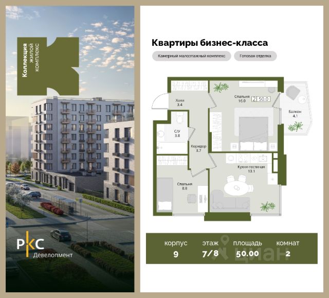 Продается уютная 2-комнатная квартира на 7 этаже с готовой отделкой от застройщика. В квартире 2 спальни ,1 санузел, балкон ,вид на дом/парковку. Угловая планировка. Общая площадь 50 кв.м. На выбор представлены 3 вида дизайнерской отделки с использованием качественных материалов. Высота потолков 3 м. ЖК "Коллекция" расположен на северо-западе от Москвы, в поселке Нахабино, всего 13 км от МКАД. Прекрасная экология и живописная природа, престижный район. В проекте планируется строительство 5 корпусов средней этажности (4-8 этажей) с террасами на угловых секциях и торцевых частях зданий, строительство собственной инфраструктуры: три детских сада, школа, поликлиника, физкультурно-оздоровительный комплекс. Жителям будут доступны машино-места в подземном паркинге, кладовые помещения. Удобная транспортная доступность позволит Вам доехать на автомобиле за 26 минут до метро "Митино", 30 минут до метро "Пятницкое шоссе", дойти до станции МЦД-2 Нахабино за 29 минут. В ближайшей перспективе - расширение местной дорожной сети и запуск новых маршрутов до ж/д станций и станций метро. Благоустроенная территория двора, позволит Вам не покидать сам жилой комплекс. Масштабное озеленение и множество площадок отдыха для взрослых и детей. Детские площадки выполнены в природных материалах, игровые комплексы с бизибордами, развивающие игровые установки для игр с песком. Спортивная инфраструктура: столы для настольного тенниса, тренажеры, гимнастический комплекс. В пешей доступности находятся парк Дружба, загородный клуб "Moscow Country Club", парк имени Карбышева. Выгодные цены на старте продаж!