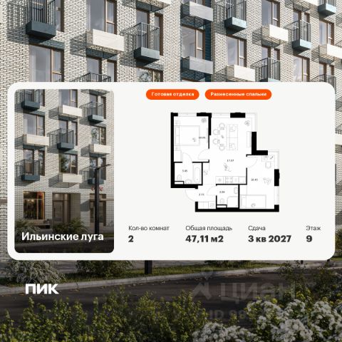Продается шикарная 2х комнатная квартира - общей площадью 53,2 кв.м, в современном жилом комплексе "Ильинские луга" в 10 км от МКАД по Новорижскому шоссе.