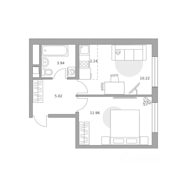 Продаётся 2-комнатная квартира 244, площадью 33,38 м², на 3 этаже в ЖК "Аникеевский" корпус 1.1. Стоимость — от 5193516 руб. Квартира без отделки, планировка односторонняя, окна на улицу.