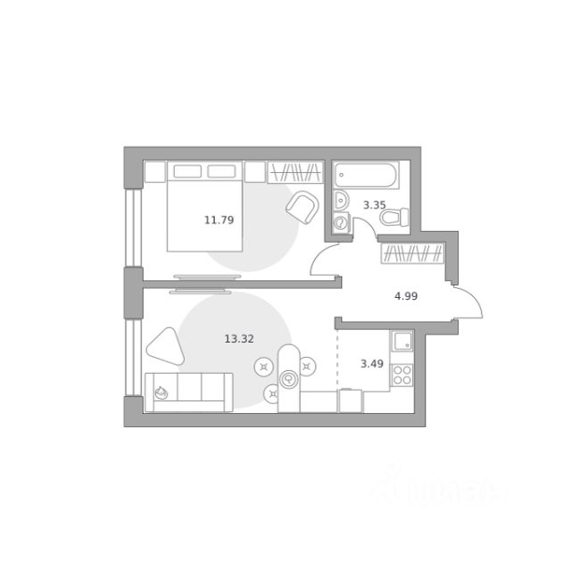 Продаётся 2-комнатная квартира 1493, площадью 36,94 м², на 17 этаже в ЖК "Ильинойс" корпус 3. Стоимость — от 9155525 руб. Квартира без отделки, планировка односторонняя, окна во двор.
