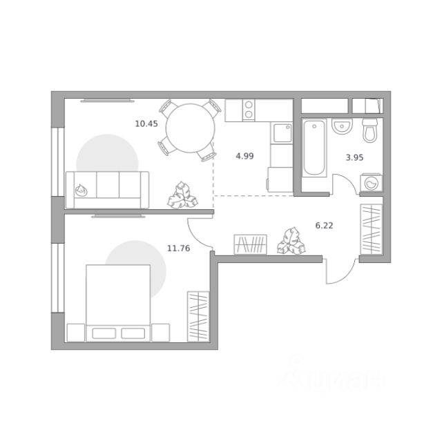 Продаётся 2-комнатная квартира 250, площадью 34,75 м², на 3 этаже в ЖК "Аникеевский" корпус 1.2. Стоимость — от 7177281 руб. Квартира без отделки, планировка односторонняя, окна на улицу.