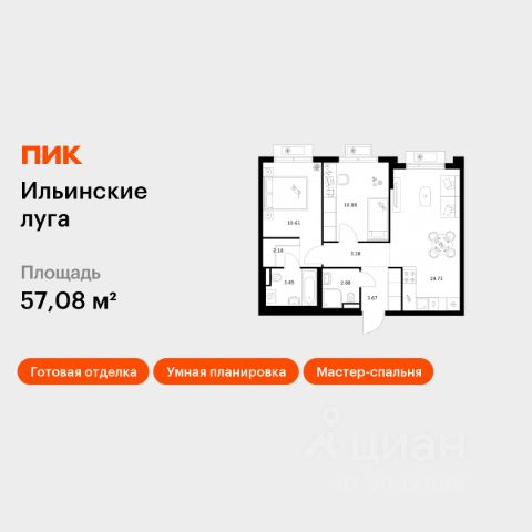 Продаётся 2-комн. квартира площадью 55,66 кв.м на 5 этаже 9 этажного дома (Корпус 4.2, Секция 5) проекта ПИК Ильинские луга. Светлый просторный подъезд на уровне земли, функциональная планировка, большие окна, предчистовая отделка. Жилой район "Ильинские луга" находится в 10 километрах от МКАД по Новорижскому шоссе, в 20 минутах на автомобиле от станций метро "Волоколамская", "Тушинская" и "Строгино". В будущем ближе к проекту, в 9 минутах пути на машине, откроется станция "Ильинская" Рублёво-Архангельской линии, которая будет соединять Арбатско-Покровскую линию и Большую кольцевую линию. Сейчас в квартале начались продажи в корпусах 3.2, 3.3, 3.4, 3.5 и 3.6. "Ильинские луга" — масштабный проект, в который входит девять детских садов, четыре школы и поликлиника. Он строится в престижном и экологичном районе среди лесов и памятников природы. За 5 минут от жилого квартала можно доехать до Рублёво-Успенского шоссе, а за 30 минут — до центра Москвы. До крупного торгового центра "РИГАМОЛЛ" всего 5 минут на автомобиле, а до ТЦ "Твой дом" и гипермаркета "Глобус" — 10 минут. В "Ильинских лугах" строятся только девятиэтажные дома — такая архитектура соответствует спокойной жизни за городом. В каждом дворе-парке есть места для отдыха, детские и спортивные площадки. А ещё, здесь уже открыт большой PlayHub "Гравити" — современное игровое пространство с космической тематикой, холмами, зонами для игр и отдыха жителей любого возраста. На первых этажах уже работают магазины, кафе и пекарни. Места для отдыха от "Ильинских лугов" тоже недалеко: 10 минут на машине — и вы в музее-усадьбе "Архангельское". Также рядом находится Лохин остров — памятник природы, где водятся речные черепахи, есть места для кемпинга и возможность сплавиться по реке. Артикул 1015619 (Застройщик ООО "СЗ "ГРАДОЛИМП") Купить 2-комнатную квартиру в новостройке в поселке Ильинское-Усово Московской области.