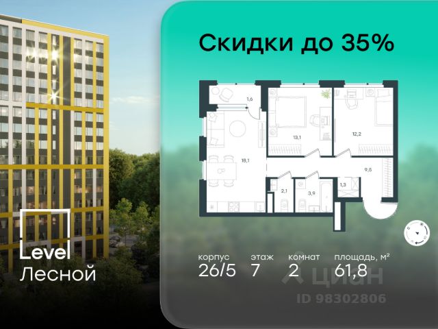 • ✅ Объект наибольшей площади: 69,2 м²