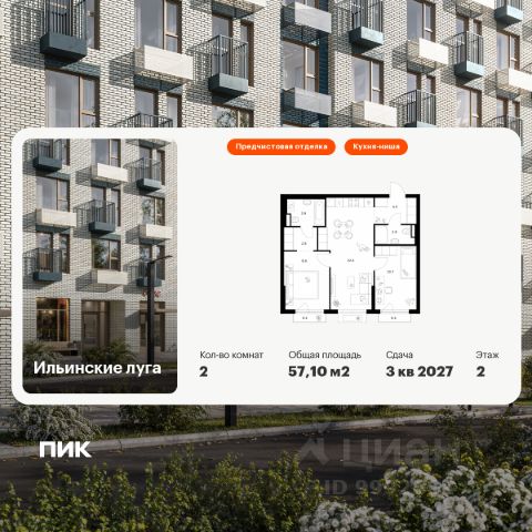 Продаётся 2-комн. квартира площадью 50,4 кв.м на 2 этаже 9 этажного дома (Корпус 4.3, Секция 1) проекта ПИК Ильинские луга. Светлый просторный подъезд на уровне земли, функциональная планировка, большие окна, предчистовая отделка. Жилой район "Ильинские луга" находится в 10 километрах от МКАД по Новорижскому шоссе, в 20 минутах на автомобиле от станций метро "Волоколамская", "Тушинская" и "Строгино". В будущем ближе к проекту, в 9 минутах пути на машине, откроется станция "Ильинская" Рублёво-Архангельской линии, которая будет соединять Арбатско-Покровскую линию и Большую кольцевую линию. Сейчас в квартале начались продажи в корпусах 3.2, 3.3, 3.4, 3.5 и 3.6. "Ильинские луга" — масштабный проект, в который входит девять детских садов, четыре школы и поликлиника. Он строится в престижном и экологичном районе среди лесов и памятников природы. За 5 минут от жилого квартала можно доехать до Рублёво-Успенского шоссе, а за 30 минут — до центра Москвы. До крупного торгового центра "РИГАМОЛЛ" всего 5 минут на автомобиле, а до ТЦ "Твой дом" и гипермаркета "Глобус" — 10 минут. В "Ильинских лугах" строятся только девятиэтажные дома — такая архитектура соответствует спокойной жизни за городом. В каждом дворе-парке есть места для отдыха, детские и спортивные площадки. А ещё, здесь уже открыт большой PlayHub "Гравити" — современное игровое пространство с космической тематикой, холмами, зонами для игр и отдыха жителей любого возраста. На первых этажах уже работают магазины, кафе и пекарни. Места для отдыха от "Ильинских лугов" тоже недалеко: 10 минут на машине — и вы в музее-усадьбе "Архангельское". Также рядом находится Лохин остров — памятник природы, где водятся речные черепахи, есть места для кемпинга и возможность сплавиться по реке. Артикул 1011755 (Застройщик ООО "СЗ "ГРАДОЛИМП") Продам 2-комнатную квартиру в новостройке с отделкой в поселке Ильинское-Усово Московской области.