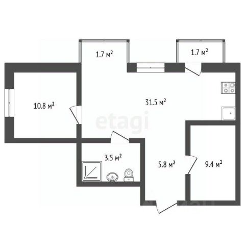 Общая площадь 49,1 м2 (в ЕГРН после обмеров в БТИ)