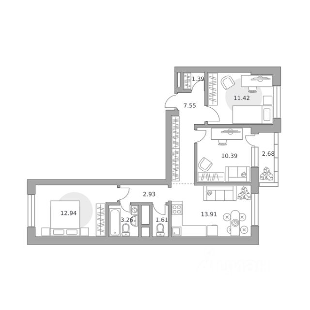 Продаётся 3-комнатная квартира 861, площадью 64,91 м², на 12 этаже в ЖК "Ильинойс" корпус 3. Стоимость — от 16055928 руб. Квартира без отделки, планировка распашная, окна во двор.