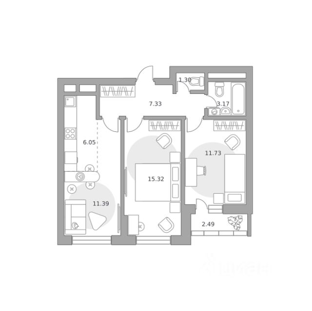 Продаётся 3-комнатная квартира 1969, площадью 56,35 м², на 12 этаже в ЖК "Ильинойс" корпус 3. Стоимость — от 14927485 руб. Квартира без отделки, планировка односторонняя, окна во двор.