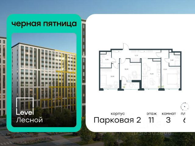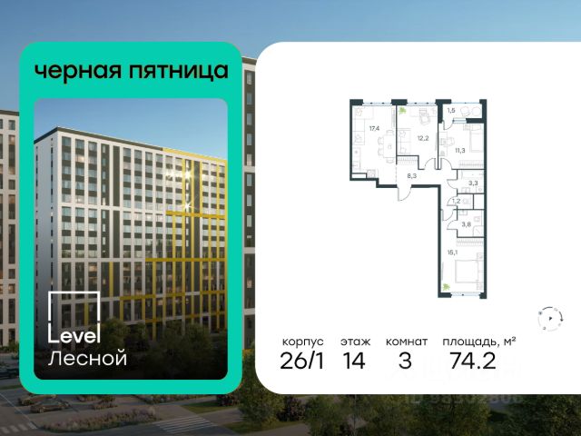 Цена указана с учётом скидки при 100%-й оплате, несубсидированной ипотеке, рассрочке (кроме программы "Рассрочка 0%"). Субсидированная семейная ипотека. Полная стоимость кредита 20,963 - 23,237% годовых. Ставка 3,9% годовых. Первоначальный взнос от 20,01%. Сумма кредита до 12 млн. руб. В районе, утопающем в густой зелени лесов, многочисленных парков и скверов, продаётся 3-комнатная квартира площадью 69.60 кв.м с отделкой white box. Квартира расположена на 13 этаже в жилом комплексе комфорт-класса Level Лесной (компания Level Group/Левел групп). Отличная транспортная доступность: - 25 мин. пешком до станции метро "Пятницкое шоссе"; - 28 мин. на автобусе до станции метро и МЦД-2 "Волоколамская"; - 11 мин. на авто до МКАД; - 25 мин. на авто до ТТК. Продуманный архитектурный проект: - Концепция проекта Level Лесной от бюро СПИЧ; - Высотность комплекса до 15 этажей с уникальными видами на лесные массивы и город; - Высота потолков до 3 м; - Современные окна высотой до 1,6 м, в части квартир предусмотрены окна в пол. Высота подоконников 0,6 м; Расположение: Level Лесной строится в зелёной зоне ближайшего Подмосковья, г.о. Красногорск в посёлке Отрадное. Шаговая и автомобильная доступность до метро и больших транспортных артерий города. За 25 минут вы дойдёте до станции метро "Пятницкое шоссе", а за 20 минут на машине сможете доехать до станции метро "Тушинская". Район окружен роскошной зеленью лесов и парковых зон, занимающих территорию свыше 1 000 гектаров. Помимо благоприятной экологии, здесь множество возможностей для активного отдыха и поддержания физической формы. Облагороженная территории с полностью развитой инфраструктурой. На территории проекта находится детский сад и школа "Светлые Горы", которая входит в список лучших частных школ от Forbes Education (по данным на 2023г.). Кроме того, в пешей доступности расположено ещё 8 детских садов, а также запланировано открытие современной муниципальной школы. В непосредственной близости находятся сетевые супермаркеты и локальные магазины, аптеки, клиники, почта, библиотека, салоны красоты, рестораны, спортивные и творческие секции, развивающие детские центры. В 12 минутах пешком расположен торговый парк "Отрада" с продуктовым и строительным гипермаркетами, магазинами, кинотеатром и развлечениями для детей. Внутренняя инфраструктура: Мы знаем, как важно, чтобы магазины и сервисы были всегда рядом. В сданных корпусах Level Лесной уже расположена полностью готовая развитая инфраструктура. На первых этажах корпуса 27 предусмотрено ещё 14 коммерческих помещений. Благоустройство: Продуманное пространство и аура приватного европейского городка рождают чувство лёгкости и расслабления у каждого, кто попадает на территорию проекта. Концепцию общественных площадок разработали в партнёрстве два архитектурных бюро: Highlight Architecture и SCAPE. В безопасных дворах без машин каждый обязательно найдёт себе место для вдохновения, отдыха и спорта.