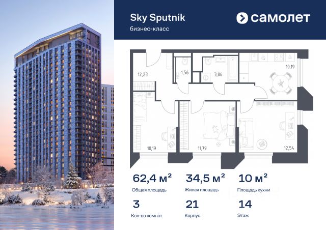 Строим кварталы для жизни с заботой о будущем. Предлагаются 3-комнатные апартаменты бизнес-класса 62,36 кв.м в корпусе 21 на 14 этаже, в Sky Sputnik Апартаменты с чистовой отделкой. Доступность дополнительных опций уточняйте у застройщика. Прописка не предусмотрена в рамках юридического статуса - апартаменты. Приобрести апартаменты возможно по специальным акциям от застройщика, с текущими условиями акций можно ознакомиться в блоке "Акций". Цена динамическая и может отличаться, уточняйте актуальность у застройщика. Квартал находится на северо-западе Московской области, в 200 км от МКАД. Из окон домов открывается потрясающий вид на парк "Липовая Роща" и Живописную бухту. Уже открыта вся необходимая инфраструктура: 3 детских сада, частная школа, аптеки, коворкинги, магазины и кафе. В 2027 году рядом с проектом появится станция метро "Липовая Роща". До станции метро Строгино можно дойти за 25 минут. Все апартаменты сдаются с отделкой и мебелью.