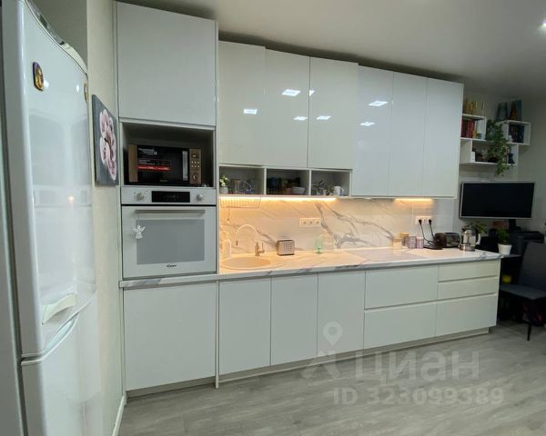 - Кухня 10.6 кв.м. с выходом на большую утепленную лоджию площадью 6 кв.м. Кухня оборудована всей необходимой бытовой техникой: холодильник, посудомоечная машина, духовка, варочная панель, вытяжка, телевизор.