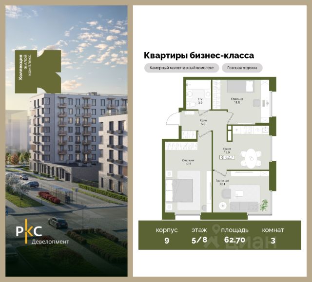 Продается просторная 3-комнатная квартира на 5 этаже с готовой отделкой от застройщика. В квартире 3 спальни, 1 санузел, вид на парковку/лес. Угловая планировка. Общая площадь 62,7 кв.м. На выбор представлены 3 вида дизайнерской отделки с использованием качественных материалов. Высота потолков 3 м. Площадь кухни 12 м2. ЖК "Коллекция" расположен на северо-западе от Москвы, в поселке Нахабино, всего 13 км от МКАД. Прекрасная экология и живописная природа, престижный район. В проекте планируется строительство 5 корпусов средней этажности (4-8 этажей) с террасами на угловых секциях и торцевых частях зданий, строительство собственной инфраструктуры: три детских сада, школа, поликлиника, физкультурно-оздоровительный комплекс. Жителям будут доступны машино-места в подземном паркинге, кладовые помещения. Удобная транспортная доступность позволит Вам доехать на автомобиле за 26 минут до метро "Митино", 30 минут до метро "Пятницкое шоссе", дойти до станции МЦД-2 Нахабино за 29 минут. В ближайшей перспективе - расширение местной дорожной сети и запуск новых маршрутов до ж/д станций и станций метро. Благоустроенная территория двора, позволит Вам не покидать сам жилой комплекс. Масштабное озеленение и множество площадок отдыха для взрослых и детей. Детские площадки выполнены в природных материалах, игровые комплексы с бизибордами, развивающие игровые установки для игр с песком. Спортивная инфраструктура: столы для настольного тенниса, тренажеры, гимнастический комплекс. В пешей доступности находятся парк Дружба, загородный клуб "Moscow Country Club", парк имени Карбышева. Выгодные цены на старте продаж!