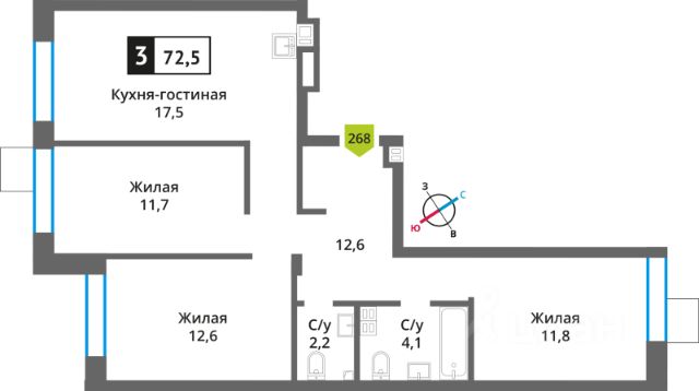 Продаётся 3-комнатная квартира в строящемся доме (поз. 4), срок сдачи: III-кв. 2027, общей площадью 72.5 кв.м., на 8 этаже. Новый жилой комплекс "Отрада. Никольский квартал" от застройщика "СЗ Отрада Вилладж" расположен по адресу: Россия, Московская область, Красногорск, коттеджный посёлок Никольский Парк, улица Александра Блока