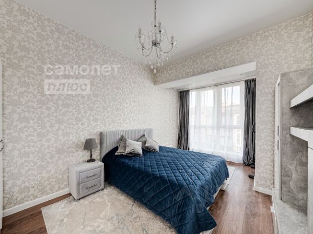 Общая площадь квартиры 66,3м2, включая большую кухню-гостиную с двумя окнами площадью 21,7м2, две изолированные спальни площадью 15,8м2 и 12м2, большой совмещенный с/у и гардеробную комнату; высота потолков - 3,1м;