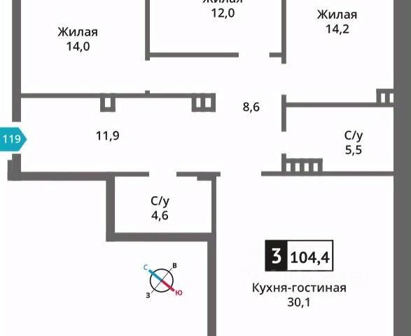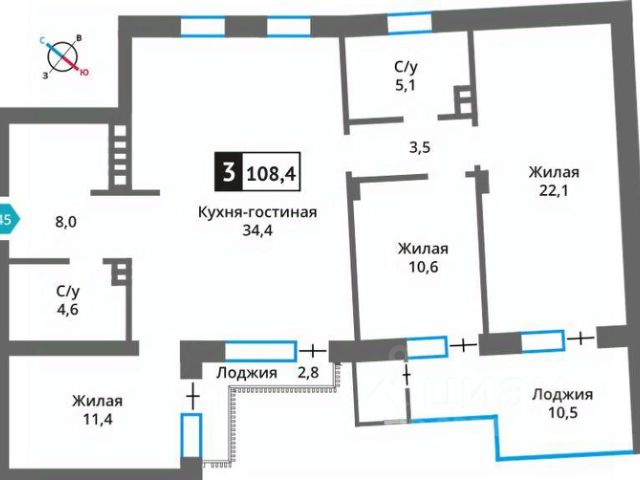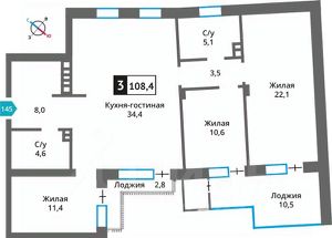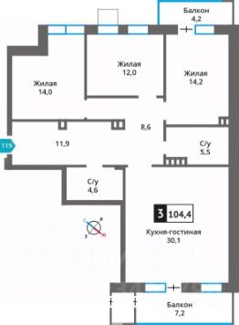 • 2-е просторные комнаты (изолированная спальня и просторная кухня-гостиная), открытая видовая терраса (10 кв.м.), совмещенный санузел - общая площадь 87 (80,3 - по БТИ) кв.м.