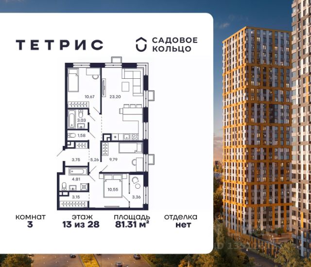 Продается квартира в ЖК Тетрис с 3 спальнями на 13 этаже 28 этажного дома. Общая площадь: 76.36 кв.м. Высота потолков 2.95 м. Срок сдачи 2 квартал 2026 г. Эскроу-счет. Застройщик ГК "Садовое кольцо". Семейный жилой комплекс "Тетрис" с собственной развитой инфраструктурой, благоустроенным двором и функциональными планировочными решениями. Собственный двор-парк, детские и спортивные площадки. Продуманные зоны отдыха с ландшафтным дизайном. Охраняемая дворовая территория и круглосуточное видеонаблюдение. Рядом удобная транспортная развязка и станция МЦД Павшино. ЖК "Тетрис" объединяет все важнейшие факторы, формирующие комфорт: Просторный обустроенный двор — место, где весело проводить время с друзьями и семьей. Свой торговый центр, чтобы любая мелочь была под рукой. Удобная локация и транспортная доступность. Свои медицинский центр и школа с блоком начальных классов. Жилой комплекс "Тетрис" обеспечит вам идеальное пространство для жизни, где все необходимое под рукой. Благодаря этому вы получаете самый драгоценный ресурс - время на общение с друзьями и семьей, заботу о себе и личное развитие. Продается 3-комнатная квартира в монолитном доме в Красногорске.
