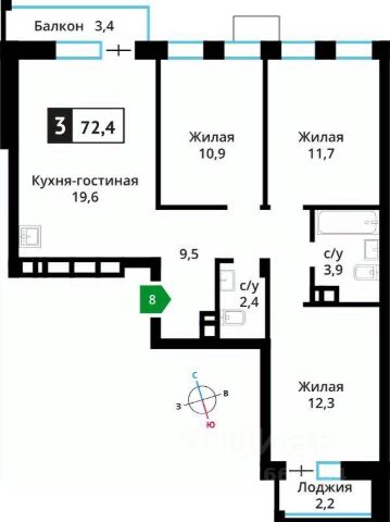 Продается 3-комнатная квартира на 3 этаже из 9, секция 5, в ЖК Riga Hills площадью 104.15 кв.м. ЖК Riga Hills (Рига Хиллс) яркий жилой комплекс бизнес-класса в экологически чистом районе Подмосковья, всего в 12 км от МКАД по Новорижскому шоссе.